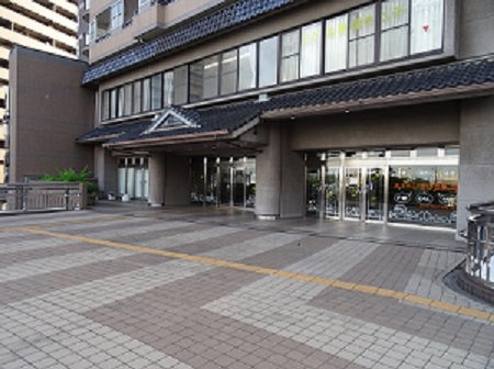| 高浜市いきいき広場の外観と入口の様子です。 普段は、市の福祉関連部署や社会福祉協議会事務所の窓口となっています。 災害ボランティアセンターを立ち上げる際は屋内・屋外のスペースを活用する予定です。 |