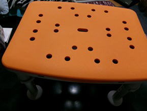浴槽台(令和7年9月受付) 未使用。目立った汚れなし。 高さ:18センチ~26センチ 5段階調整可能(2センチ間隔) 幅:40センチ 奥行:32.5センチ 天板(オレンジ):幅37センチ、奥行30センチ 重さ:1.8キログラム 最大使用者体重:100キログラム